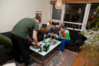 V Oslu obiščemo Lars-a, ki nam je prijazno ponudil toplo prenočišče in skuhal oz. pogrel tradicionalno Norveško jed, ki jo baje jejo na vseh porokah, pogrebih, krstih, birmah, you name it… Tkole čez oko bi rekel, da je sestavljena iz ajdovih njokov, na tanko narezane govedine in vse to skupaj skuhano v “juhi”. Zraven smo dobili še krompir in kuhano zelenjavo. MLJASK! Ob pitju piva smo ugotovili, da njegova plezalna knjižnica premore tudi slovenski plezalni vodniček:)