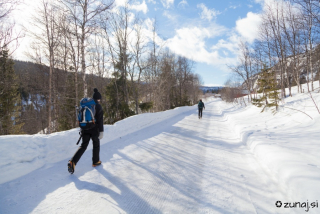 Z Lukam se zagledava v slap Makalu(150m, WI4-5). Hitro nama je žal, da nimava krpelj, saj se nama je ugrezalo do pasu. Naposled le stojiva pod slapom, a ni zgleda najbolje. Videti je bilo nekaj lukenj, kjer je na dan že pogledala skala, pa tudi sicer je bil led čuden in je bolj spominjal na zbit južen sneg kot led… Vseeno sva poizkusila s plezanjem, a zaključila po slabih desetih metrih zaradi slabih razmer…