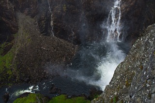 Zjutraj zaslišiva dežne kapljice, ki padajo na šotor. Vremenoslovci so zopet točno napovedali vreme. Na hitro pospraviva vlažen šotor, se usedeva v avto in v GPS vneseva Oslo. Pot naju pelje mimo Eidfjorda, od kjer se dvigneva za 1200 v.m. Spotoma obiščeva ogromni slap Voringforsen in dva manjša, ki se zlivajo v isto sotesko.