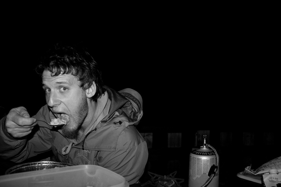 Ko želimo štartati proti plezališču, se nebo pooblači in ponovno se vsuje dež. Sicer ne veliko, a dovolj da je zmočil cesto. Namesto v plezališče, tako zavijemo v trgovino in spotoma poiščemo še internet, kjer preverimo emaile. V trgovini kupimo hrenovke in ob jezeru zakurimo ogenj. Ker se z Maretom že nekaj časa nisva umila, izkoristiva slabo vreme za kopanje v jezeru, ki je imelo več stopinj kot okolica. Sledi pojedina z rasta solato.