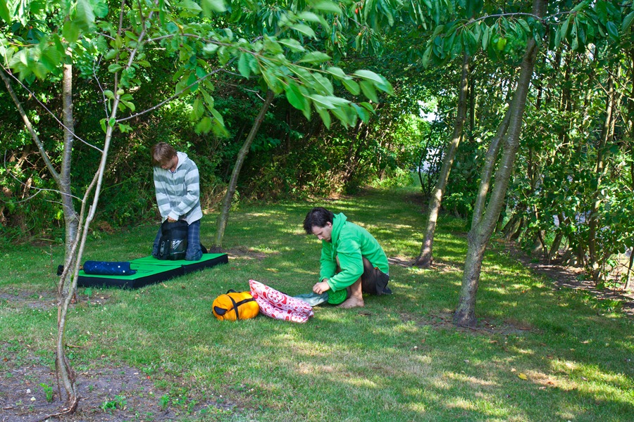 Ob 2:15 se vkrcamo na trajekt in ob 3:00 smo na Danskem. Končno, po 21 urah, na cilju. Od prenočišča nas loči še 15km. V GPS vnesem koordinate(N54,72452° E11.24700°) prenočišča in že drvimo. Na cilju ugotovimo, da je bil pred kratkim pognojen, vendar avseeno najdemo primeren neobdelan kotičen. Barbi zaspi v avtu, midva z Maretom pa na travniku. Najboljši spacen EVER!