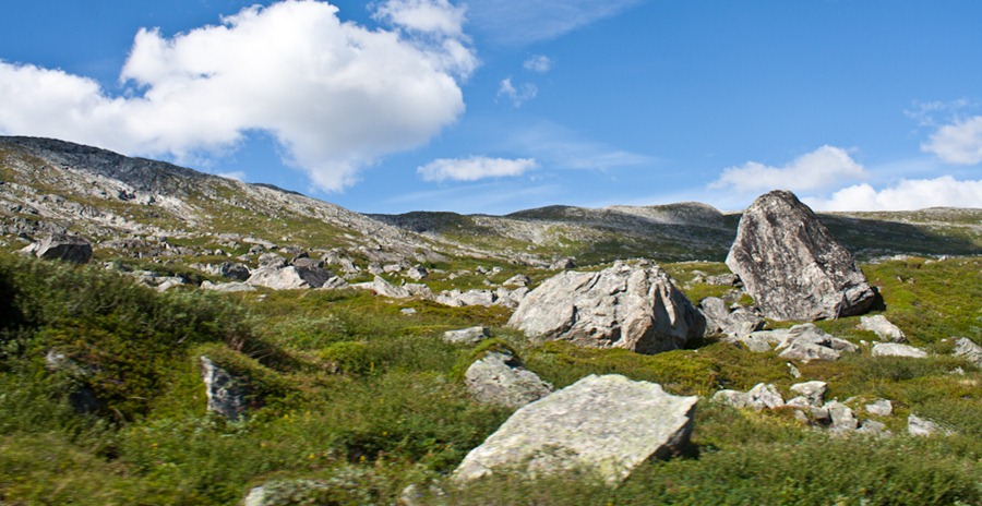 Zjutraj pogledam iz šotora in šok: vse okoli naju je v oblakih. V upanju na boljšo vremensko napoved se zapeljeva do signala in na GSMu preverim napoved za ta dan. Oblačno in vmes morda kako uro jasno. Plezanje na Store Vengetin tako na žalost odpade. Najbolje, da greva naprej. Pospraviva “Strojanov” kamp in gasa proti Trollovi cesti. Na bencinski preverim količino olja in zgrožena ugotoviva, da je “testna palčka” čisto suha. Hitro nalijeva liter “taboljšega”.