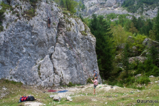 Zjutraj naju prebudi vročina v šotora in jasnina na nebu. “Pjt greva plezat, dokler je še hladno!” rečem Mirotu in smukneva jo v plezališče nad slapom Kozjak. Do njega vodi dobro utrjena cesta in zadnjih nekaj metrov, utrjena pot. Kot že prejšnji dan, se mi tokrat zopet smeri ne zdijo najlažje, a za to je verjetno kriva dolga odsotnost od plezanja. Tudi tokrat ne splezava veliko, saj naju kmalu doseže sonce in z njim poletna vročina. Spakirava in se odpraviva nazaj v kamp.
