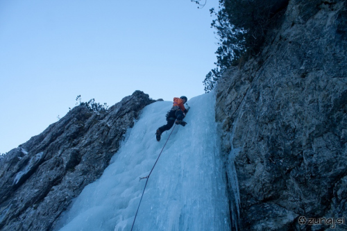 Tokrat sem se odpravil v Logarsko dolino, kjer smo tečajnike seznanjali z ledom. Kljub povišanim temperaturam so slapovi dobro stali, le kvaliteta ledu se je izboljšala, saj je postal lepo mehak.