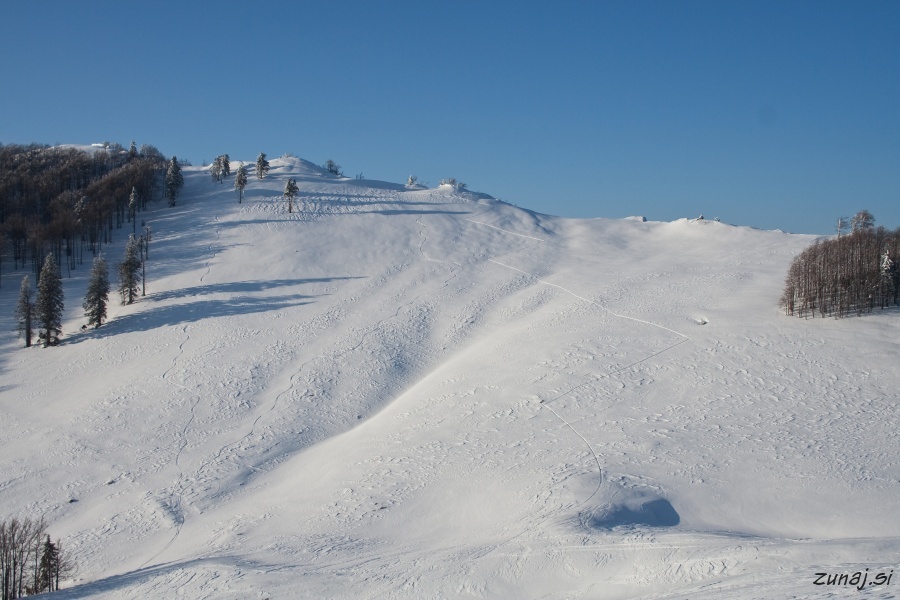 Ko se pripravim na ponoven spust, se mi na mp3ju ravno začne vrteti Koširjev komad Včasih smučam hit, včasih pa počas. Danes bo počasi pa z užitkom. Je pa res kar pravi v pesmi: “Too much of skiing makes you an addict!”
