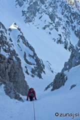Po prečki pa gasa naprej in desno v žleb proti izhodu.